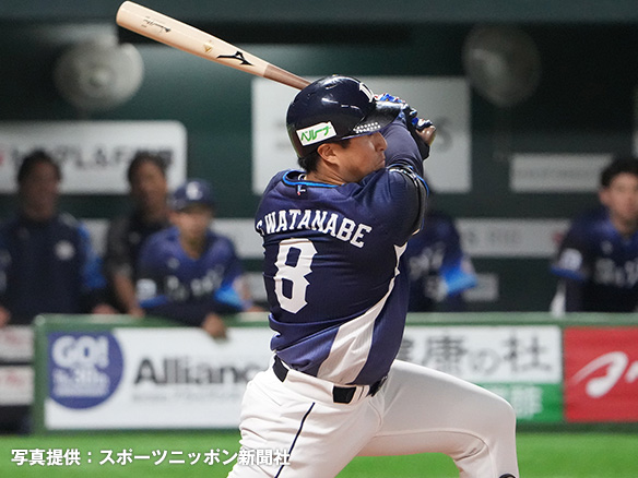 | 3番 渡部聖 中安 ランナー2塁 低めのカーブをセンターへ先制タイムリーヒット! 1塁 ソ0-1西  0 1  | |