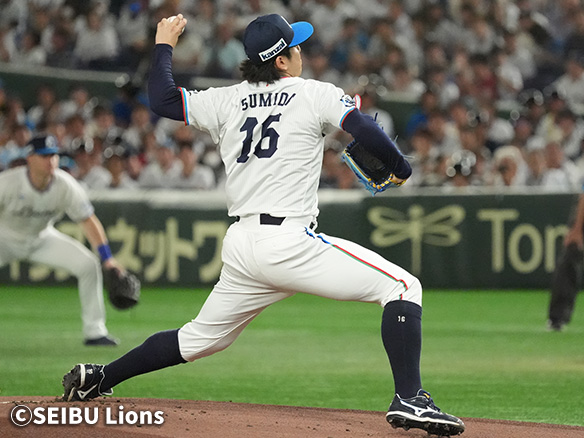 | ノーアウト | 投手 隅田 4番 レイエス 四球 フォアボールを選ぶ 1塁 |