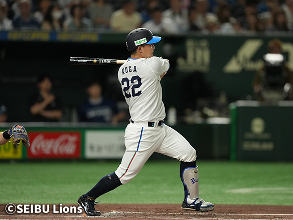 | 9番 古賀悠 中安 低めのストレートをセンターへ打ってヒット 1塁 | |