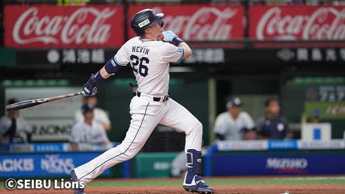 | 4番 ネビン 左2 ど真ん中のストレートをレフトへ打ってツーベース 2塁 | |