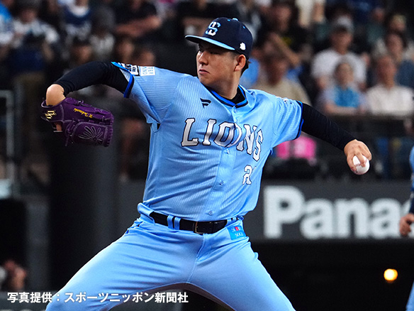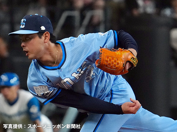 | ノーアウト | 投手 中村祐 投手 ボー・タカハシ 守備変更:古賀悠→キャッチャー 守備変更:ボー・タカハシ→ピッチャー |