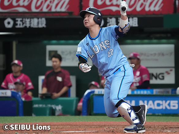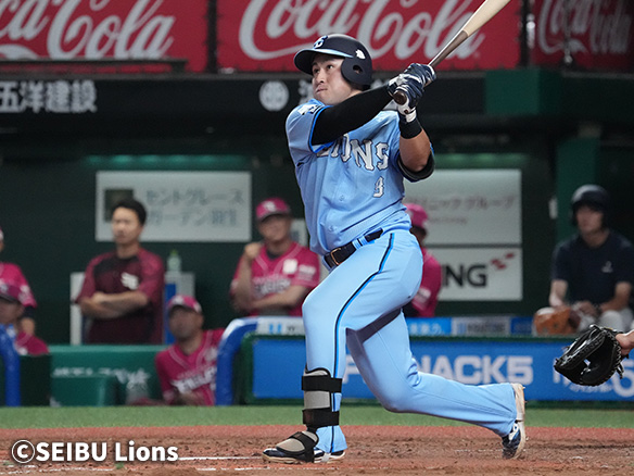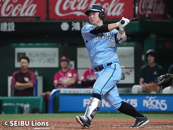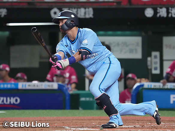 | 9番 源田 右3 満塁 内角低めのストレートをライトへタイムリースリーベース! 3塁 西9-3楽  9 3  | |