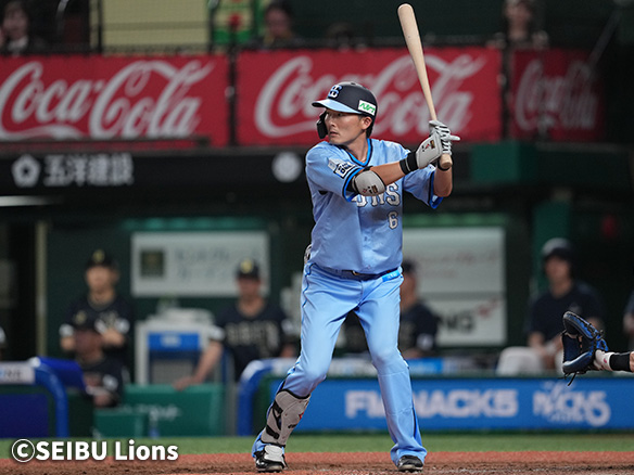 | 2番 源田 左安 ランナー1,3塁 外角低めのシンカーをレフトへタイムリーヒット! 1,2塁 西1-3オ  1 3  | |