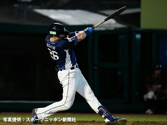 | 2番 平沼 左安 ランナー2,3塁 150キロの外角のストレートをレフトへタイムリーヒット! 1,3塁 楽2-8西  2 8  | |