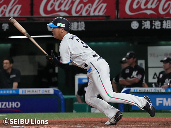 | ノーアウト | 投手 ボス 3番 外崎 左安 内角低めのストレートをレフトへ打ってヒット 1塁 |