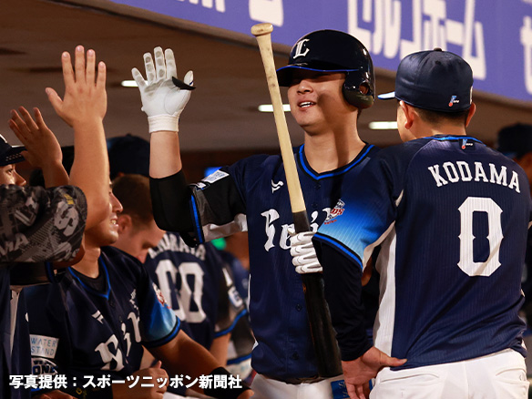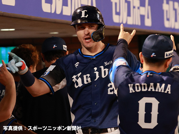 | 3番 外崎 左安 高めのチェンジアップをレフトへ打ってヒット 1塁 | |