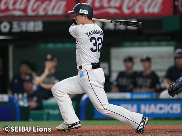 6番 山村 左安 外角高めのフォークをレフトへ打ってヒット 1塁 |