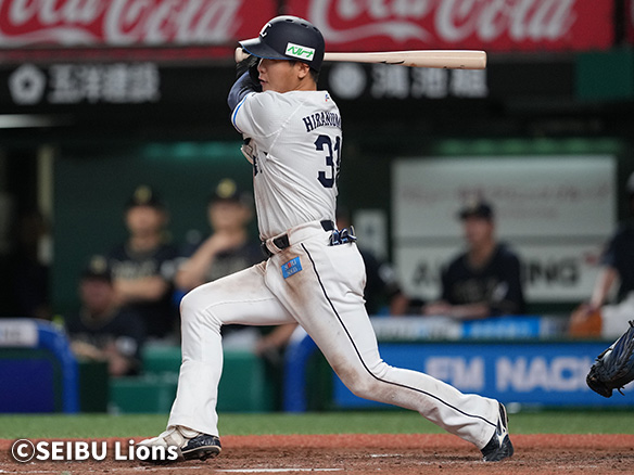 3番 外崎 三安 ランナー1塁 内角高めのカーブをサードへ打ってヒット 1,2塁 |