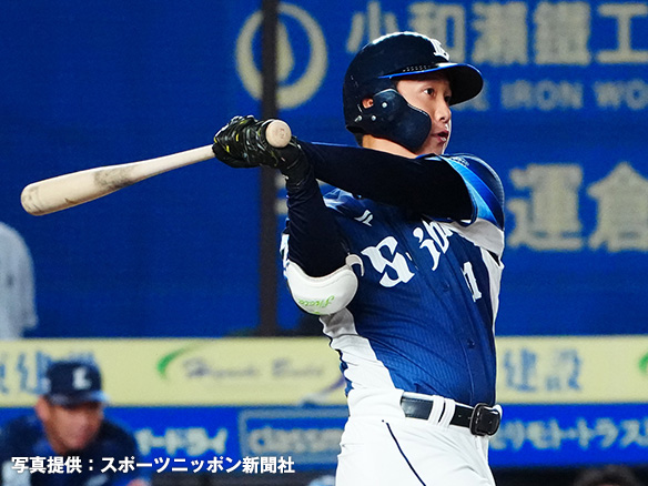 3番 渡部聖 左安 内角高めのカットボールをレフトへ打ってヒット 1塁 |