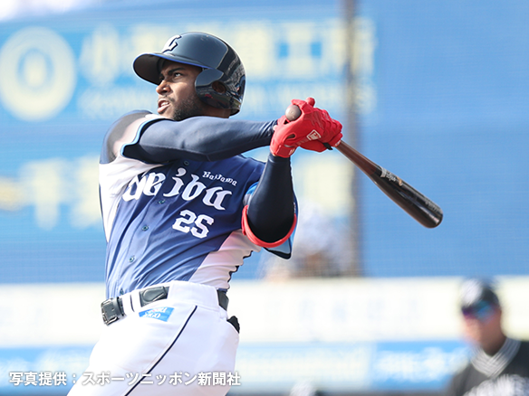 4番 ポランコ 空三振 高めのカットボールを空振り三振 2アウト |
