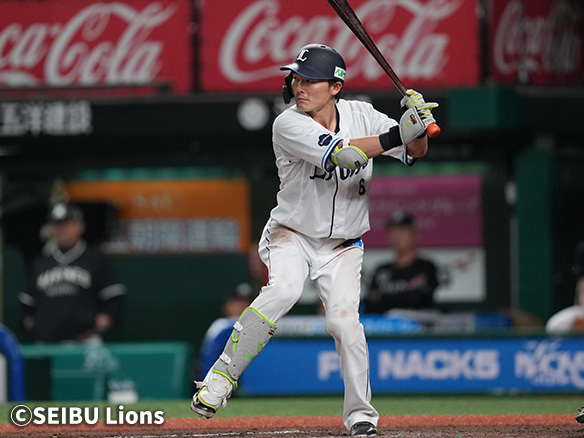 2番 源田 左安 内角低めのカットボールをレフトへ打ってヒット 1塁 |