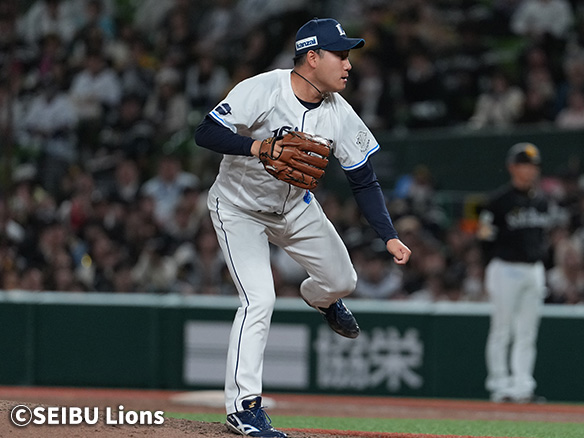3番 牧原大 空三振 外角低めのフォークを空振り三振 3アウトチェンジ |