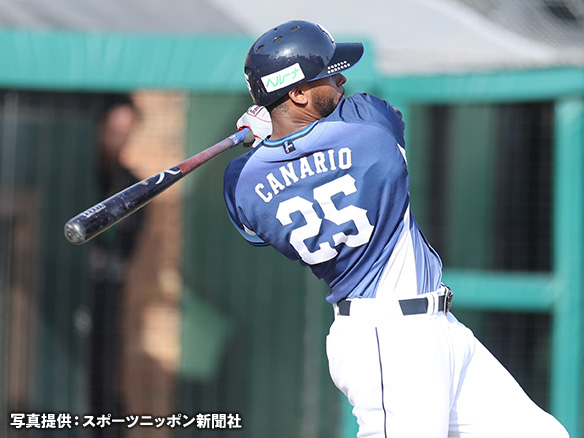4番 カナリオ 空三振 低めのチェンジアップを空振り三振 3アウトチェンジ |