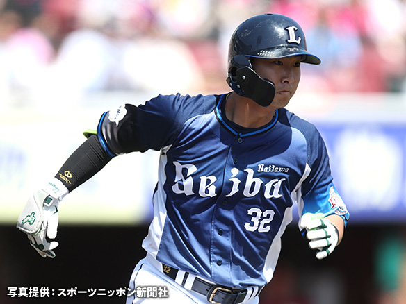 8番 源田 左2 ど真ん中のストレートをレフトへ打ってツーベース 2塁 |