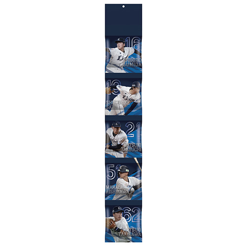 隅田投手、佐藤隼投手、武内投手、西川選手、滝澤選手の5選手がパッケージになったラムネ