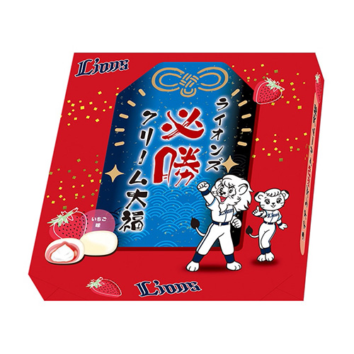 ふわふわのイチゴ大福にレオとライナがプリントされたかわいいイチゴ大福!
