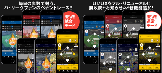 2年目を迎える2017年シーズンは、“毎日の歩数で競う、パ・リーグファンのペナントレース"をテーマに、多くのファンが楽しみながら歩いてもらうことを目指し、大規模なバージョンアップを行います。