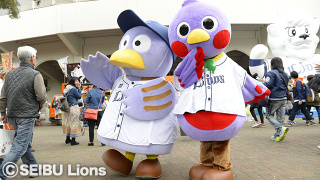 ライオンズファンにも大人気の埼玉県のマスコット「コバトン」と「さいたまっち」が登場!ライオンズのユニフォームを着用したコバトンとさいたまっちが試合前、試合中のフィールドに登場して県営大宮球場を盛り上げます!