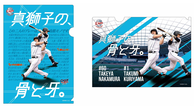 主力としてライオンズを支え続けてきた両選手の魅力が詰まったデザインそのままに、クリアファイルやタペストリー、缶バッチ、ICパスケースなど豊富なラインナップで揃えました。