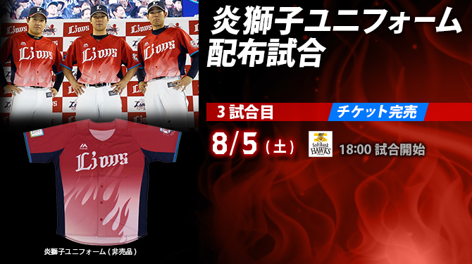 残りわずかのお席もございます。確実に炎獅子ユニフォームをゲットして、メットライフドームを赤く熱く盛り上げよう!