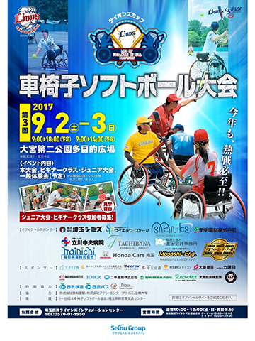 今週末9月2日(土)・3日(日)に埼玉西武ライオンズが主催する「第3回ライオンズカップ車椅子ソフトボール大会」が大宮第二公園多目的広場で開催されます!