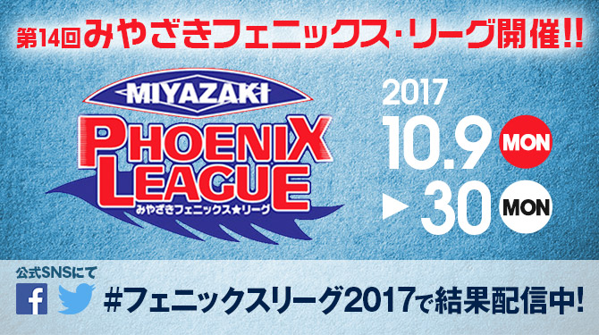 10月9日(月・祝)~30日(月)に行われる、「第14回みやざきフェニックス・リーグ」の結果を球団公式SNSで配信します。また球団公式サイトでは、イースタンリーグと同様にスコアシートも掲載します。