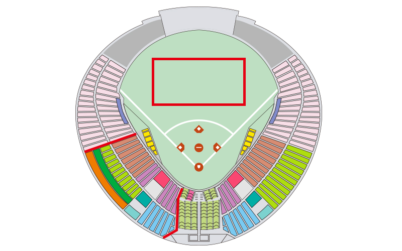 3塁側内野席、フィールドエリア(グラウンド外野エリアの一部)