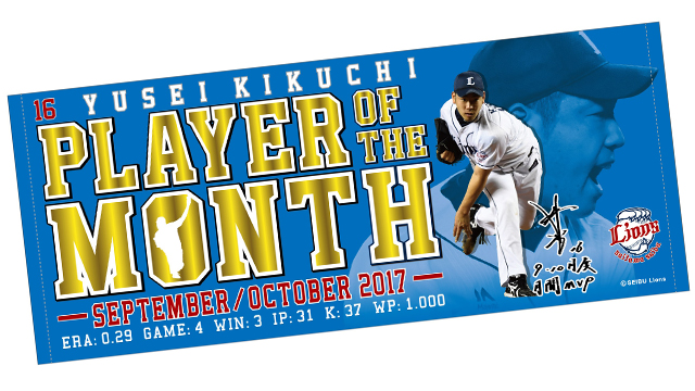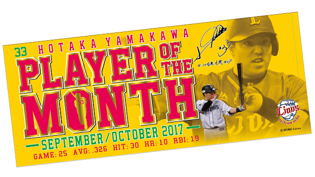 菊池投手は9・10月度4試合に登板し3勝(0敗)、防御率0.29の好成績、山川選手は9・10月度全25試合に出場し、打率 .326、30安打、10本塁打、19打点の好成績を残しました。