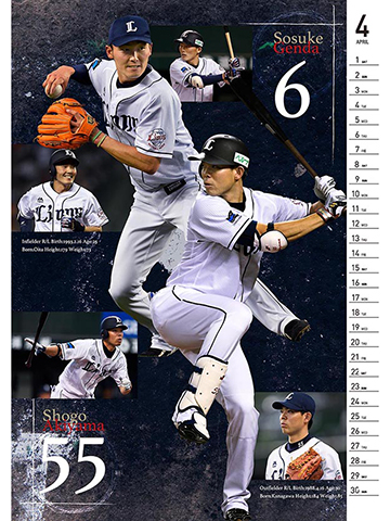 チームカレンダーは選手の迫力ある写真をふんだんに使用した、ライオンズファンにはたまらないデザインに。