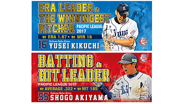 菊池投手と秋山選手の2017年パシフィック・リーグタイトル獲得を記念した、オリジナルグッズをサンクスフェスタで販売!