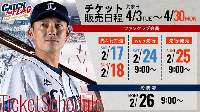明日2月17日(土)は、「ライオンズ・クラシック2018」ユニフォーム(非売品)を来場者全員に配布する4月17日(火)東京ドーム開催試合のファンクラブ会員Web先行チケット販売日となります。