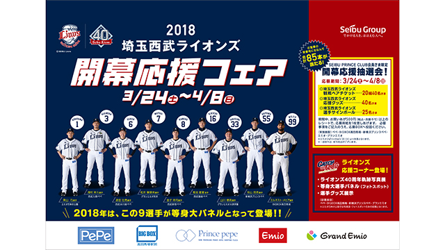 3月24日(土)~4月8日(日)は西武鉄道沿線商業施設にて、埼玉西武ライオンズ開幕応援フェアを開催いたします!