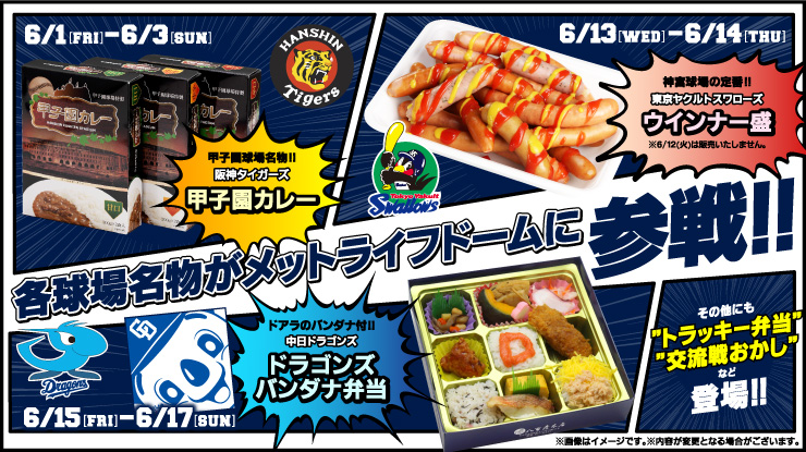 6月1日(金)~6月17日(日)にメットライフドームで開催される交流戦8試合は、各チームの球場名物や人気のお菓子を存分に楽しみましょう!!