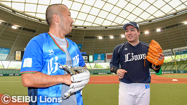 今日の試合前には、来たるべき対決に備えて、大蔵さんが山川選手に教えを乞う一幕も。2人でキャッチボールを行い、山川選手は打者目線でのアドバイスとエールを送りました。