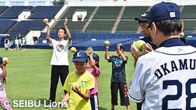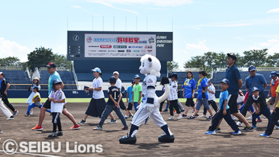 8月28日(火)群馬・上毛新聞敷島球場で開催された東北楽天ゴールデンイーグルス戦に先立ち同球場で「埼玉西武ライオンズ野球教室in群馬」が実施されました!