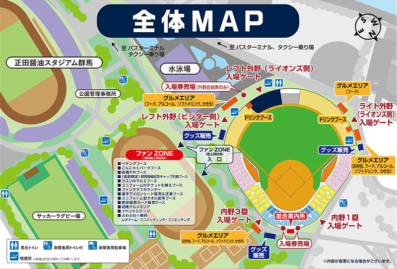 上毛新聞敷島球場アクセス方法・無料シャトルバスのご案内はこちら