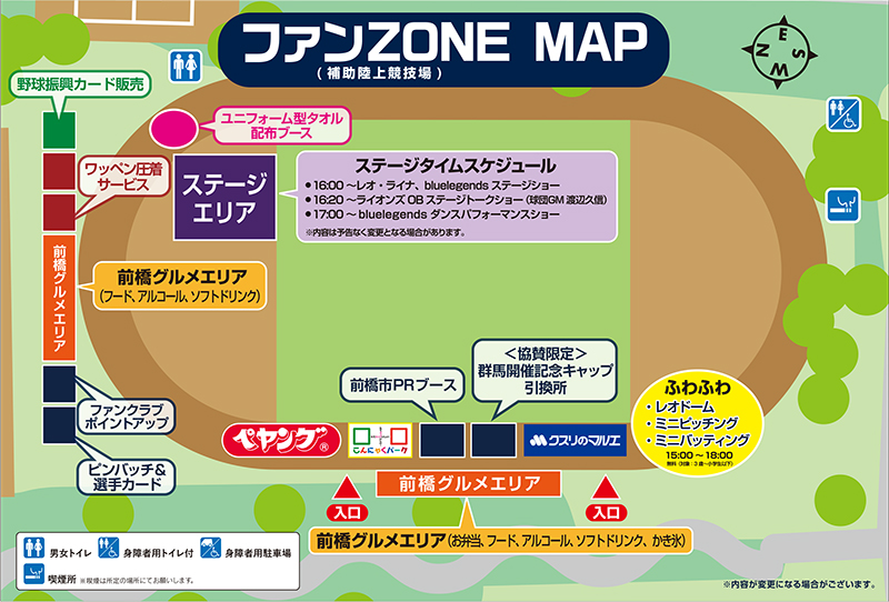 また、渡辺GMは試合前のOBトークショーにも登場!そのほかにもおなじみの「ふわふわレオドーム」や、野球アトラクション「ふわふわピッチング・バッティング」も群馬に登場するほか、5回裏終了後には群馬の夜空に特大の花火を打ち上げます!ぜひ、詳細をチェックしてお越しください!