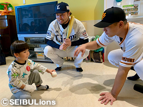 武隈投手は6月に難病のこどもたちがいる埼玉県内の施設を炭谷選手と訪問をしており、今回は炭谷選手の所属先本拠地での慰問となりました。