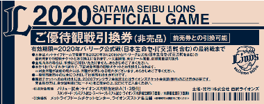 大宮開催協賛企業さま2020年埼玉西武ライオンズ主催試合観戦チケット引換券