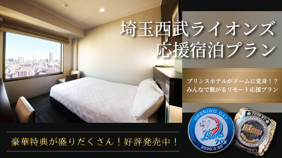 | 内容 | 『埼玉西武ライオンズ応援宿泊プラン』 ~プリンスホテルがドームに変身!?埼玉西武ライオンズ“みんなで繋がる”リモート応援プラン~ |