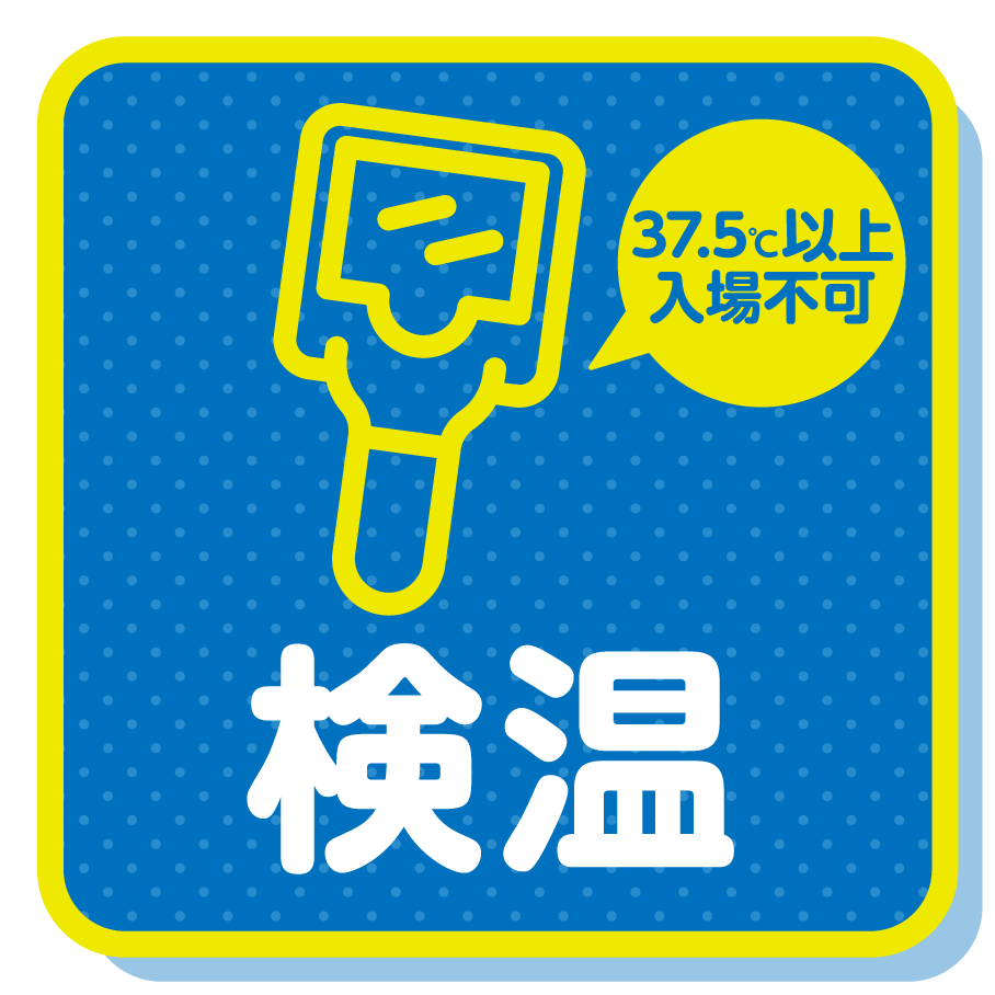 非接触型体温計による体温計測を実施いたします。特定温度(37.5℃)未満の方は、そのままご入場いただけます。