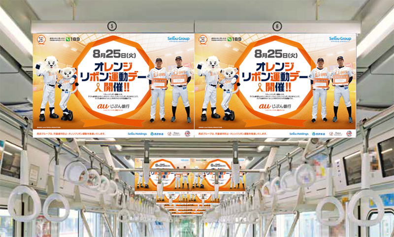 8月11日(火)~24日(月)までの計14日間、西武鉄道池袋線で運行する埼玉西武ライオンズラッピング電車「L-train」の1車両(10両編成)に、オレンジリボン運動を啓発するポスターを掲出します。