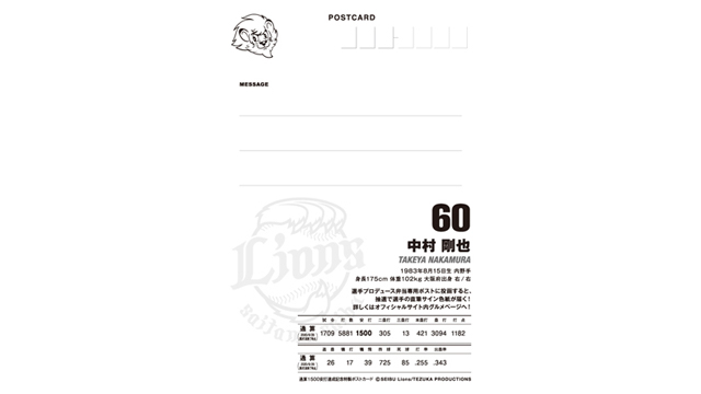 中村選手の「通算1500安打達成記念特製ポストカード」がゲットできるのはこの3日間限定です!!数に限りがございますので、お早めにお買い求めください。