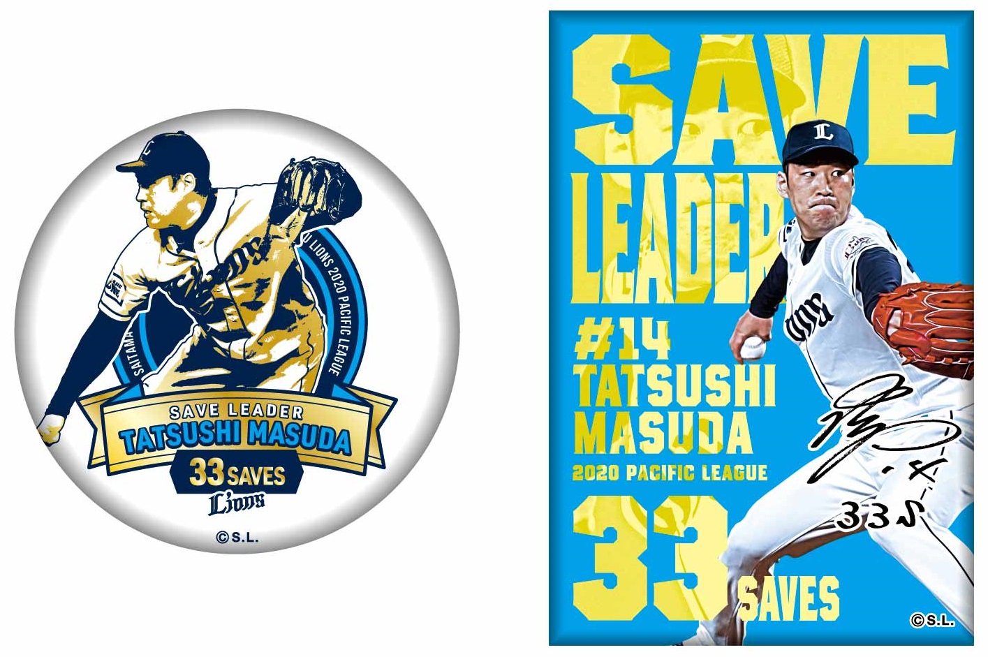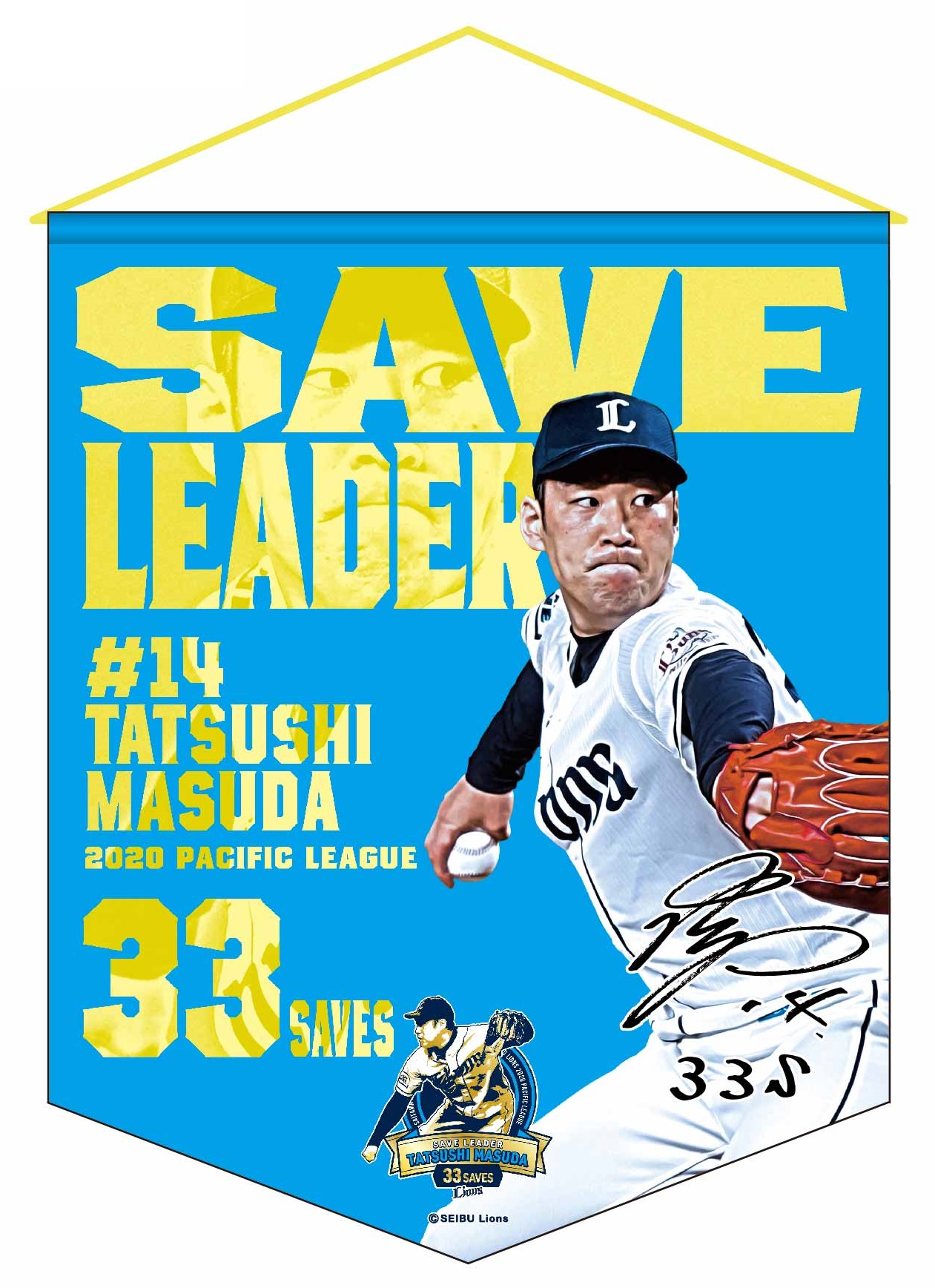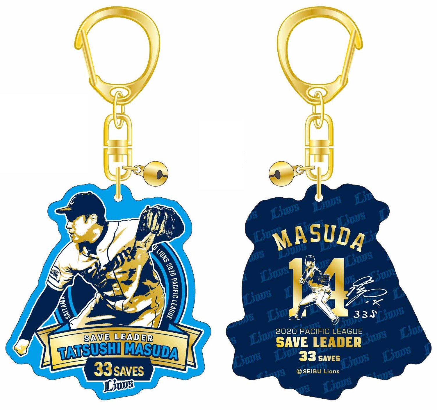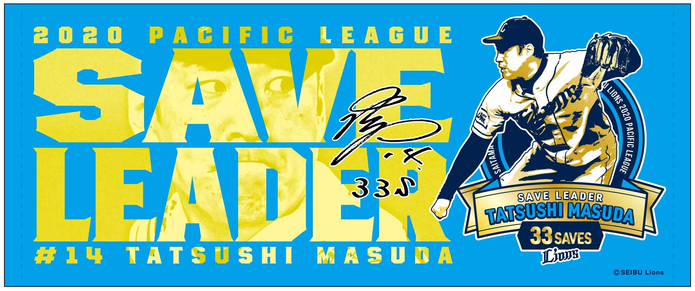 MY PAGE2020シーズン、増田達至投手が「最多セーブ投手賞」のタイトルを獲得! これを記念し、「パ・リーグ最多セーブ投手賞記念グッズ」をライオンズストア オンラインにて本日11月20日(金)より受注販売いたします! 記念デザインのTシャツやフェイスタオル、キーホルダーをはじめ、タペストリーに缶バッチ、ステンレスタンブラーなど豊富なラインナップをご用意しました。どのアイテムも、タイトル記念にふさわしい豪華なデザインに仕上がっています! 増田投手の今シーズンの活躍を記念した限定アイテムをこの機会にぜひ、お買い求めください!