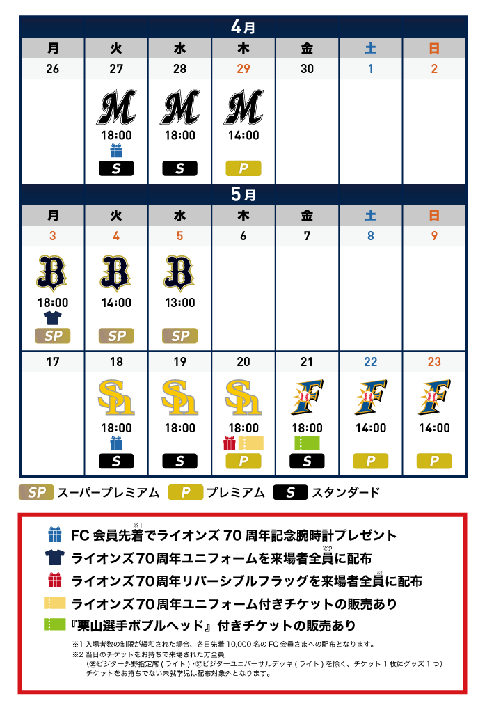 販売を停止するチケットは埼玉西武ライオンズ主催一軍公式戦4/27(金)~5/23(日)計12試合となります。
