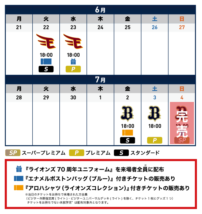 販売を停止するチケットは埼玉西武ライオンズ主催一軍公式戦6月22日(火)~7月3日(土)の計4試合となります。