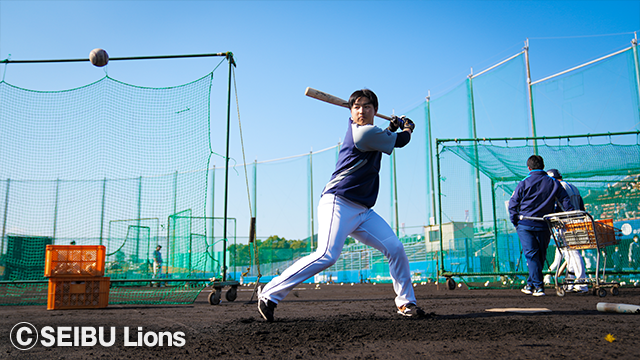 今日は打廻りがいつもより早い時間にスタート。各々ポジションについてバッティングを行う新しいメニュー、シート打撃が登場。