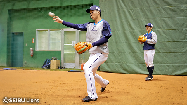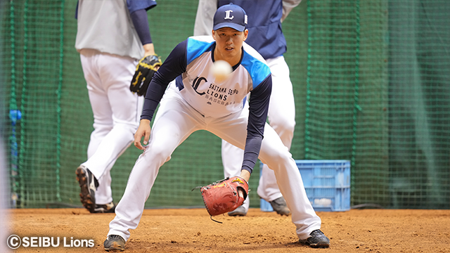 そんな古賀選手は森選手・柘植選手・牧野選手と共に個別強化で特守に参加。名捕手に必須のハンドリングなどを調整していきます。