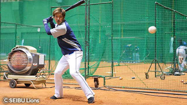 愛斗選手が打席に立って実践に近いかたちでの練習も行います。