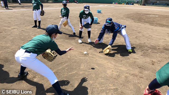プロの見本を見せながら、こどもたちと同じ目線で野球の楽しさと技術を伝えていきます。